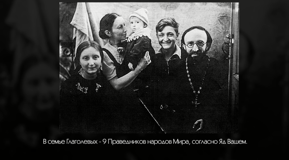 О своих предках рассказывает Зоя Сергеевна Глаголева. Она происходит из легендарного дворянского рода киевских священников Глаголевых. Её дедушка - отец Александр, профессор Киевской духовной академии, специалист по древнееврейской вере, в т.ч. ангелологии. Отец Александр останавливал погромы в дореволюционном Киеве и защищал евреев во время «кровавого навета» дела Бейлиса. Его дети в годы Второй мировой войны спасали в Киеве евреев от расстрела в Бабьем Яру.