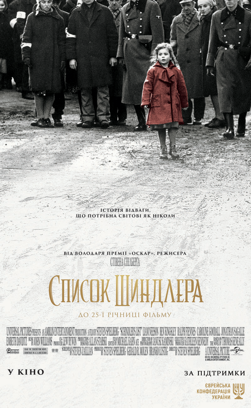 За підтримки Єврейської конфедерації України в Києві 27 січня починається ретроспективний показ фільму Стівена Спілберга «Список Шиндлера».