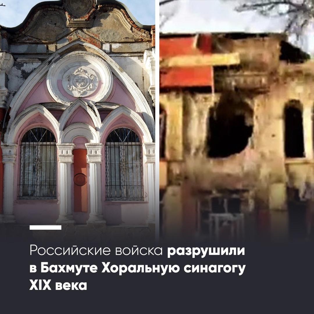 «У середині XIX століття в Бахмуті була побудована Хоральна синагога, яка стала архітектурною окрасою міста. Вона пережила і громадянську, і Другу світову війну. Сьогодні від неї майже нічого не залишилося – російські обстріли перетворили синагогу на руїни», - написав Ложкін.