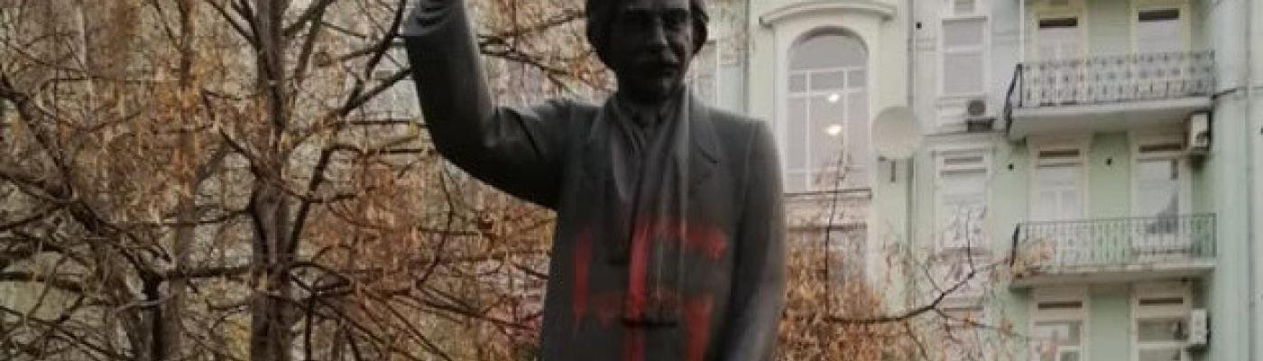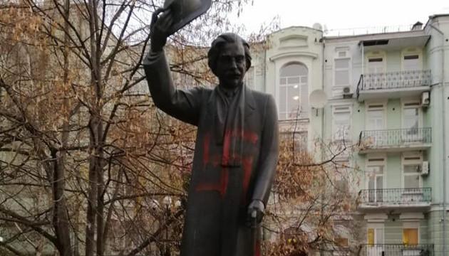 Сьогодні, 25 листопада, вандали осквернили пам'ятник Шолом-Алейхему, що знаходиться навпроти синагоги Бродського, розмалювавши його криваво-червоними свастиками.
