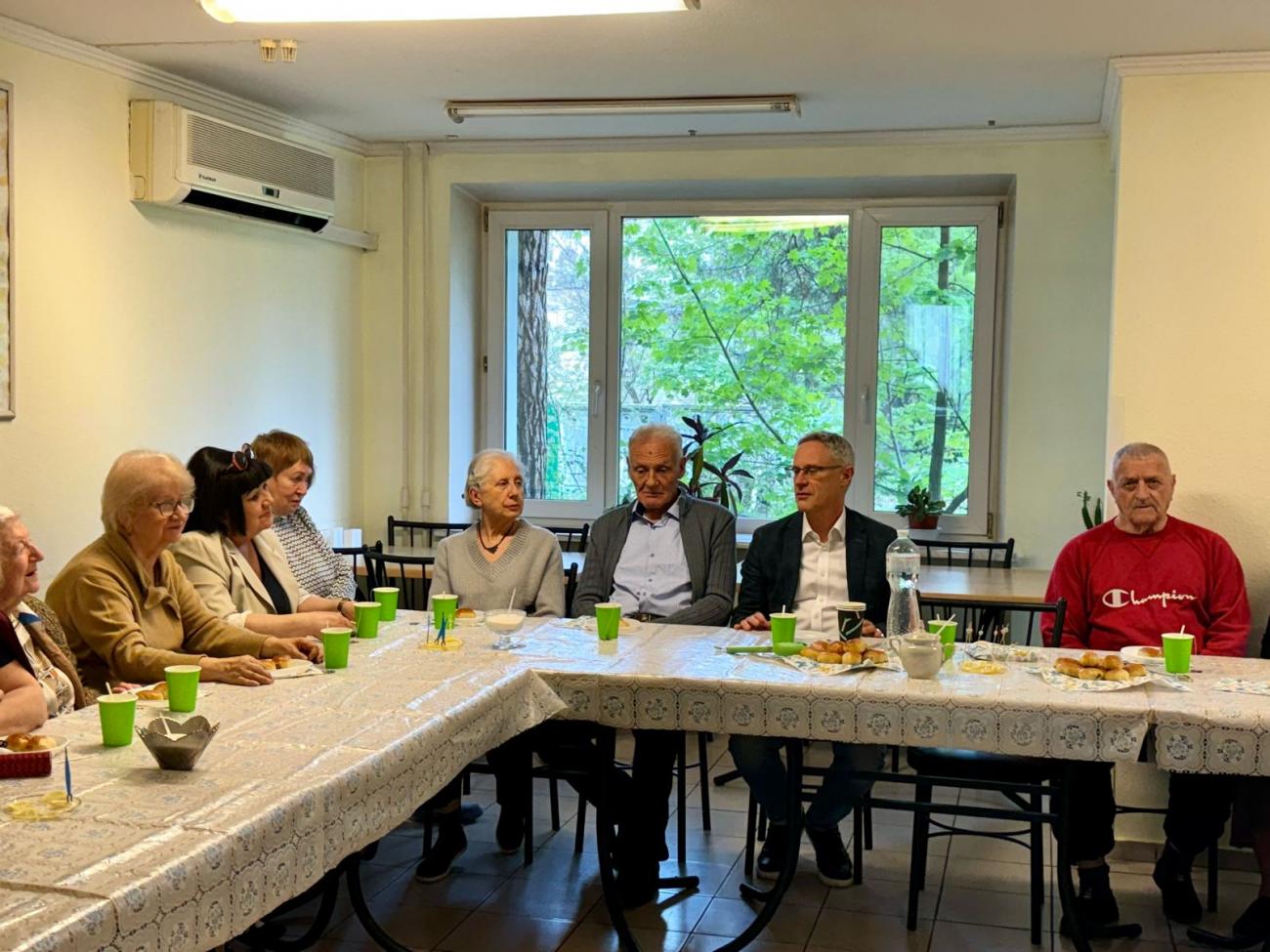 В ходе общения с послом старики, некоторые из которых пережили Холокост, поделились собственными историями выживания в двух войнах.